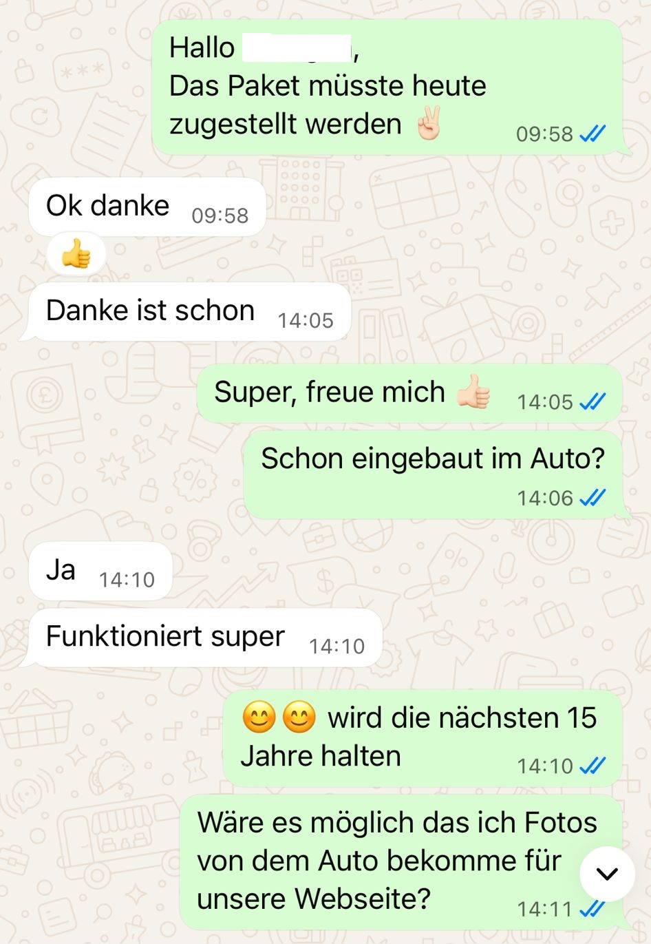 Wir informieren Sie per WhatsApp über jeden Schritt, von Ankunft bis Rückversand: